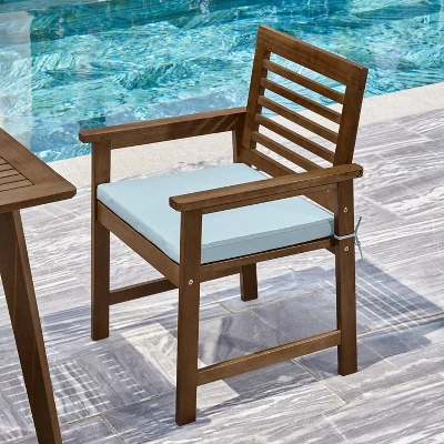 This beautiful brown wood color is easy to mix and match with any existing furniture. Eucalyptus solid wood construction can withstand weather and is the favorite choice for long-lasting outdoor furniture. Clean edges and slatted seat construction, this chair will make a great combination with any piece of furniture in your patio.