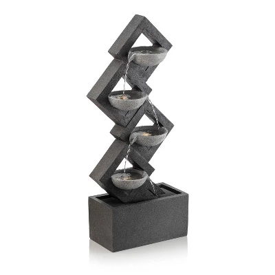 Add modern style to your indoor/outdoor space with the Alpine Corporation Soothing 4-Tier Zen Fountain with LED Lights. With this high-quality fountain, you can create a meditative, relaxing atmosphere, even in an urban jungle. The contemporary and stylish two-tone stone like design looks great in your garden, patio, deck, porch, or indoor space. Take in the tranquil sounds of the water gently cascading down the 4 pots to create a calming environment. LED lights in each of the tiers illuminate your space, drawing attention to the relaxing water pools day or night for added ambiance. The polyresin construction is weather-proof, rust-resistant, and durable for years of quality use. To use, simply plug in to an outlet, fill lower level with water, and watch as the interior pump with 6 ft. cord length, creates a lovely water flow reminiscent of a trickling stream. With a 1-year warranty, you can be confident in the quality of your purchase. Fountain measures 16″L x 8″W x 39″H for use in your home or in yards of any size.