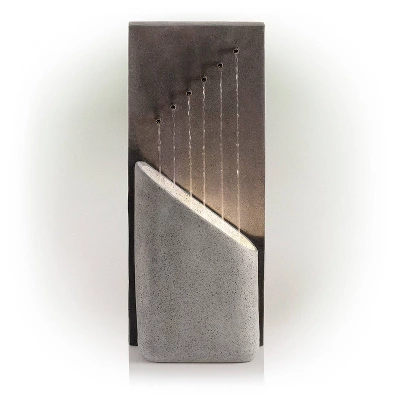 Add modern style to your indoor/outdoor space with the Alpine Corporation Infinity Calming Floor Fountain. With this high-quality fountain, you can create a meditative, relaxing atmosphere, even in an urban jungle. The contemporary and stylish two-tone stone like design looks great in your garden, patio, deck, porch, or indoor space. Take in the tranquil sounds of the water gently flowing from 6 spouts to create a calming environment. The resin and fiberglass construction is weather-proof, rust-resistant, and durable for years of quality use. To use, simply plug in to any indoor/outdoor outlet, fill lower level with water, and watch as the interior pump with 6 ft. cord length, creates a lovely water flow reminiscent of a trickling stream. With a 1-year warranty, you can be confident in the quality of your purchase. Fountain measures 17″L x 10″W x 40″H for use in yards of any size.