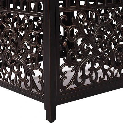 - This premium fire table set has a black antique copper finish applied via durable powder coat