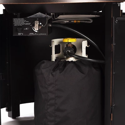 - This premium fire table set has a black antique copper finish applied via durable powder coat