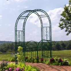 Put the classicDuraTrel Bakersfield 72″x 85″ White Vinyl Arbor at the entrance to your garden and your guests will be welcomed in style. The sides and top of this arbor boast grid frameworks that encourage climbing vines and flowers to flourish. The weather-resistant and maintenance-free PVC vinyl ensures years of enjoyment without the worry of fading or the hassle of painting. The pre-drilled holes make for easy assembly and the included ground anchors provide stability. All Duratrel products come with a 20-year limited manufacturer warranty.