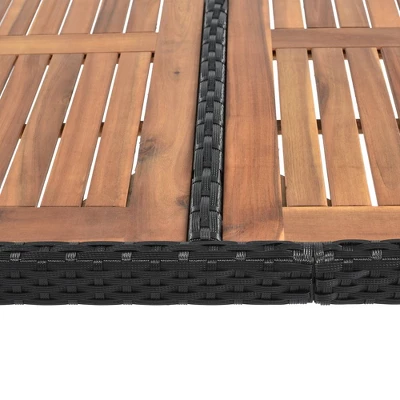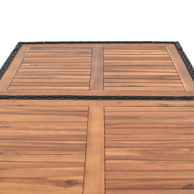 - The outdoor dining set comes with a large dining table, provide enough space for dining or gathering. High-quality acacia wood is used for the table top to improve weight capacity and ensure safety. The exquisite design of textured stripes on the tabletop adds charm to your patio.