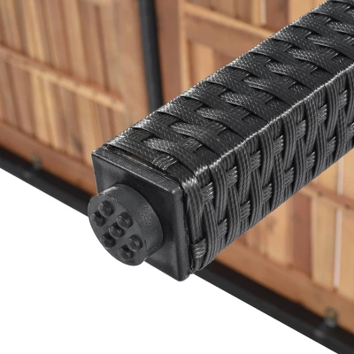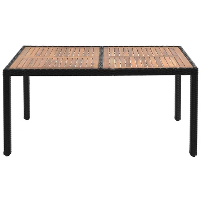 This 7-Piece Outdoor Patio Dining Set consists of a table with acacia wood top and 6 chairs with foam-padded cushions, bringing elegance and unique charm to your backyard, garden and courtyard. The table combines hand-woven rattan wicker and premium acacia wood, meet your preference for rattan and wood furniture at the same time. Ergonomically cushioned chair backrests that curve to the contour of the human body for the utmost relaxation and comfort. Equipped with silver rings on the chair legs, modern and elegant, showing an attractive appearance while ensuring stable seating. Built for both style and utility, steel frame with power-coated process adds support for durability and long last. Polyester fabric cushions are padded with high-density foam to provide comfort, water-proof for easy cleaning. With this rattan wicker and acacia wood dining set, create a picture-perfect patio from outdoor sunlight.