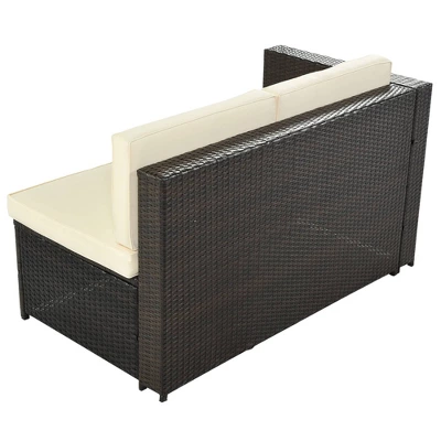 Turn your backyard into an outdoor getaway with our 9-Piece Wicker Patio Set. Designed with versatility in mind, each set comes with a 6 seater sofa,a coffee table,two Ottoman and two single chair. Crafted with thick woven rattan wicker weaving reinforced with rust resistant steel, this patio set is resistant to water, cracking, splitting and sun rays so it can last you and your family for years to come. Lean back and relax for hours on end with the thick high density foam cushions upholstered in soft polyester covers that are formulated for easy spot cleaning, while the spacious design comfortably sits 9-10 people for plenty of room for your family and guests. This patio set is the perfect addition to backyards, patios, poolside, gardens and any other outdoor spot that needs a little polishing up.