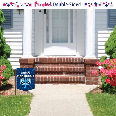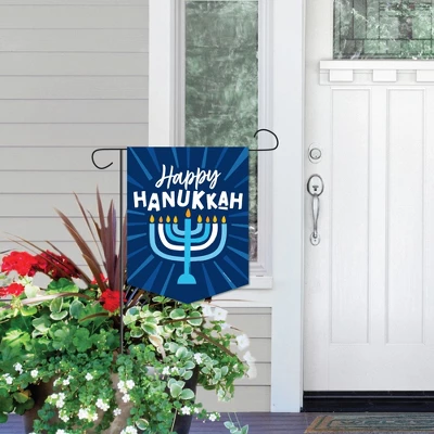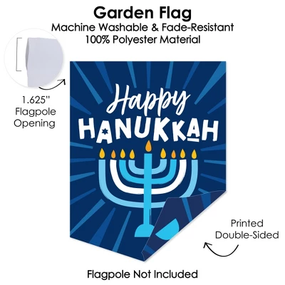 Hanukkah Menorah Garden Flag INCLUDES 1 polyester fabric material garden flag in a vertical pennant shape that measures 12 inches wide and 15.25 inches tall. (Flagpole Not Included) Cute Decor: Welcome houseguests with this weather resistant Hanukkah Menorah Garden Flag. Printed double-sided, Blue and White – Chanukah Holiday Party Garden Flag looks great placed close to your home, added to flowerpots, or displayed next to your favorite garden gnome decoration. Yard & Home: Hanukkah Menorah Garden Flag is machine washable and fade-resistant, allowing you to easily display in your outdoor lawn or inside your home for a fun Chanukah Holiday Party decoration. The small and cute size helps make this a great housewarming gift for a loved one’s deck, patio, porch, or yard. High-Quality Supply: Hanukkah Menorah Garden Flag is professionally printed double-sided on 100% polyester material. With a 1.625-inch flagpole opening, easily & quickly display the vibrant Blue and White Garden Flag. Please Note: Flagpole Not Included – will fit most standard-sized garden flag stand flagpoles. Printed In The USA: Hanukkah Menorah outdoor lawn and home Garden Flag is designed and manufactured at our Wisconsin facility using materials that are Printed in the USA – Fabric Flag Made in China.