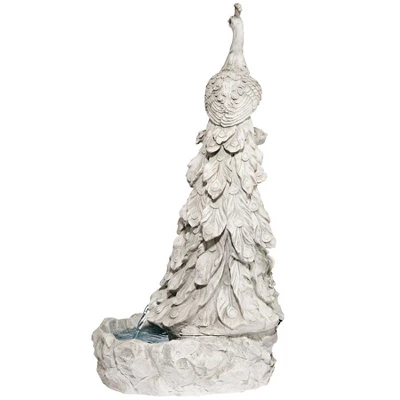 Allow nature’s proud peacock to transform your home or garden into a place of quiet contemplation with its lilting water music surrounded by a cascade of feathers. Artistically sculpted from the top plume above to the pool basin below, this functional work of decorative art is cast in quality designer resin with a fine stonework finish. Our classic sculptural fountain creates a meditative atmosphere and a truly calming resting place. Features an integrated, UL-listed, indoor/outdoor pump. Simple assembly required.8½”Wx9½”Dx19″H. 10 lbs.