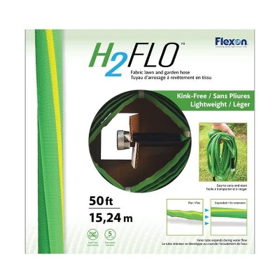 The H2Flo fabric hose features a compact, lightweight yet durable design ideal for watering your lawn and garden. It starts out flat, then expands as water flows through it. Its outer jacket is constructed of woven fibers to offer maximum durability as its expandable inner tube fills with water, allowing for kink-free watering. After use, the H2Flo once again flattens out making it easy to carry and store. The H2Flo features nickel-plated couplings and is available in 50- and 100-foot lengths with a five-year