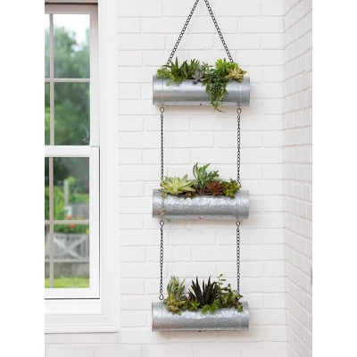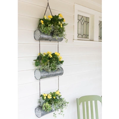 - PRODUCT DETAILS: Gardeners Supply Galvanized Hanging Triple Planter A stylish and practical solution for adding greenery to your space. Crafted from durable galvanized metal, this triple planter offers a unique way to showcase your favorite plants and flowers while maximizing vertical space.