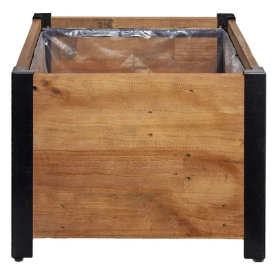 Update the look of your indoor or outdoor garden space with this 17.2-Inch Wooden Square Urban Raised Garden Planter Box from Grapevine.With a 17.2-inch size, this urban planter is ideal for growing vegetables, flowers, or foliage in your home garden. This square planter is constructed of recycled pine wood pallets that bring a unique, farmhouse-style look to your garden space. The powder-coated steel frame and legs are durable and won’t rust over time, even with the daily watering of your plants. This wooden planter includes a plastic lining that helps keep dirt and excess water inside the wooden box and off indoor flooring. When you want to re-pot your plant, simply lift out the plastic lining for easy cleanup. Overall, this pinewood planter measures 17.2 inches long, 17.2 inches wide, and 15.35 inches tall to display all your favorite plants.Add a stylish look to your garden with the 17.2-Inch Wooden Square Urban Raised Garden Planter Box from Grapevine.