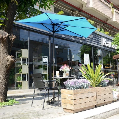 - HALF PATIO UMBRELLA – The easy-to-use crank handle opens and closes this outdoor umbrella in seconds, while the 9-foot half canopy provides ample shade. To create your outdoor oasis, simply place the steel pole in an umbrella base, stand, or table.