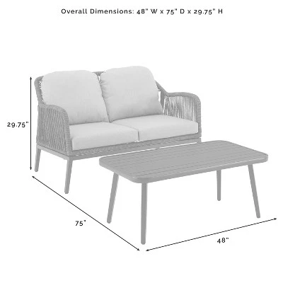 The Haven 2pc Conversation Set delivers an on-trend look in a traditional package with a natural rope look over powder-coated steel. Outfitted with lush weather-resistant cushions, the loveseat offers a fetching retreat from the daily grind, while the metal slatted coffee table provides a sturdy place to rest a drink. With the perfect balance of modern metal and boho chic, the Haven Conversation Set will have you relaxing in style.