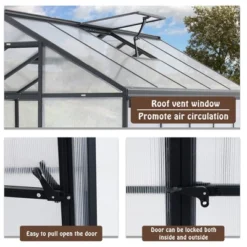 Aoodor Walk-In Greenhouse Polycarbonate Panel Hobby Greenhouses With Aluminum Frame Heavy Duty