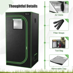Costway 36”x36”x72” Mylar Hydroponic Grow Tent W/Observation Window & Floor Tray GrayBlack