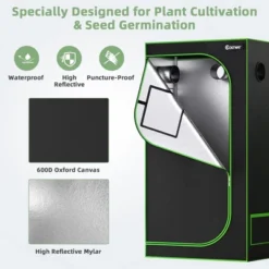 Costway 36”x20”x63” Mylar Hydroponic Grow Tent W/Observation Window & Floor Tray GrayBlack
