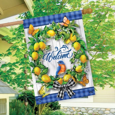 Lemon Wreath Spring House Flag Welcome Bluebird 28" X 40" Briarwood Lane