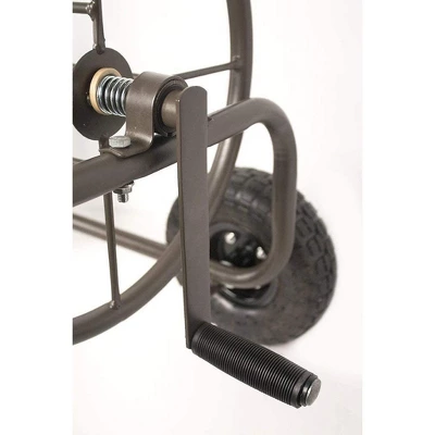 Store your hose away while you’re on the go with this Liberty Garden 871 4 Wheel 250 Foot Steel Frame Water Hose Reel Cart. Made of weather-resistant powder-coated 13-gauge steel, this cart is built to last. It holds 250 feet of 0.63-inch standard vinyl hose so it’s easy to store away and roll around. The 90-degree brass swivel connector makes it easy to turn the reel with the non-slip handle grip. With 4 8-inch pneumatic tires, maneuverability around the garden is a breeze. The attached storage basket will hold all your other garden accessories with ease. No need to walk across your whole garden to grab your gloves or hoe. Designed for home, farm, and commercial uses the Liberty Garden 871 4 Wheel 250 Foot Steel Frame Water Hose Reel Cart is endlessly versatile.