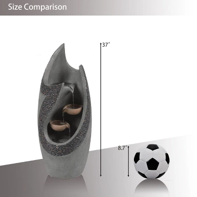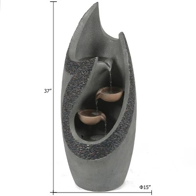 The beautiful mixture of complementing gray finish with a brown and gray faux pebble border makes this water feature a wonderful focal point for your outdoor living space. The curvy design will give your space dimension and depth. The electrical fountain pump recirculates the water and powers two lovely LED lights inside the fountain. Enjoy the relaxing sound of the cascading water while the light gently reflects off the fountain and waterfall. The fountain is crafted using cement material that is made for outdoor use. Water fountains bring a meditative element to your space. The fountain is easy to set up on your patio, porch, or deck.