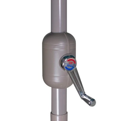 Provides ideal coverage for entertaining guests at your outdoor dinner party. Our large rectangular patio umbrella can accommodate a four to six person dining set, up to 62 inches in diameter. Features a standard hand crank mechanism that allows for ease of use, as well as aluminum and steel ribs that provide excellent canopy support. Features:Umbrella shape: rectangle Canopy color: navy blueFrame and pole color: brown Diameter of open umbrella: 10′ long x 6.5′ wideHeight: 8.5′ Pole diameter: 1.5″ (38mm) Lift: hand crank 6 ribs Material(s): 160 gram polyester canopy/powder coated aluminum pole/steel ribs Note: Umbrella only, the base is not included
