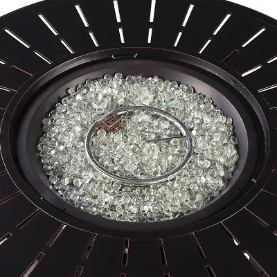 Whether your outdoor retreat is located in the mountains, on the coast, or somewhere in between, this fire table set will extend your evenings with friends and family around the fire. With this addition you can enhance your outdoor setting with even more ambiance and relaxation. This fire table set comes with an Outdoor Aluminum 44 in. Round Fire Table Set with Four Deep Seating Swivel Rocking Chairs, Fire Beads, Lid, Propane Tank Cover and Table Fabric Cover. The dimensions for the fire table are: 44″ L x 44″ W x 24.5″ H, 71.5 lbs. Each chair dimensions are: 28.3″ L x 33.8″ W x 34.2″ H, 27.3 lbs. The chair seat is 12.6″ H from the seat to the floor.