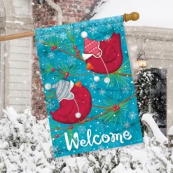 Portly Winter Birds House Flag Welcome Knit Hats 28″ X 40″ Briarwood Lane