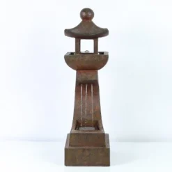 LuxenHome Stone-Gray Cement Modern Tiered Outdoor Garden Fountain With Lights