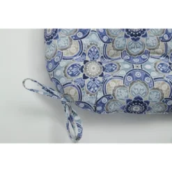 Set Of 2 Outdoor/Indoor Reversible Chair Pads Keyzu Medallion Mariner Blue – Pillow Perfect