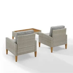 Capella Outdoor Wicker 3 Pc Set With Two Chairs And Coffee Table Gray/Acorn – Crosley