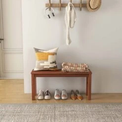Costway Patio Backless Bench 2-Seater Outdoor Dining Bench Solid Wood Garden Backyard