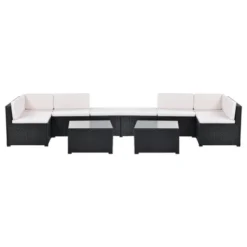 4pc Wicker Patio Seating Set With Cushions – Gray/Beige – GODEER