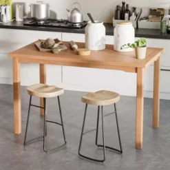 Costway Patio Rectangle Dining Table Teak Wood Spacious Slatted Tabletop Outdoor Up To 6