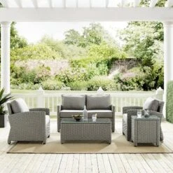 4pc Thatcher Outdoor Steel Seating Set Creme/Driftwood – Crosley
