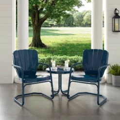 Ridgeland 4pc Outdoor Metal Conversation Set – White – Crosley