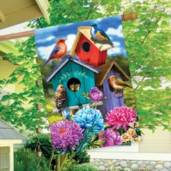 Colorful Birdhouses Spring House Flag 28 X 40 Briarwood Lane