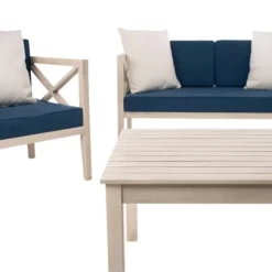 Nunzio 4pc Outdoor Set With Accent Pillows – White/Navy – Safavieh