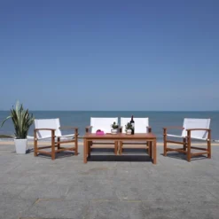 Ozark 4pc Acacia Wood Patio Conversation Set – Natural – Safavieh