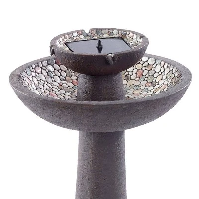 The Riverstone 2-Tier Solar-On-Demand Fountain is a classic, elegant fountain with a brown finish. This fountain creates soft ambient sounds and is sure to add peace and relaxation to any garden or outdoor area. Solar on Demand allows you to choose when you want your fountain to work. Charge battery in the sun and use the stored energy to power the fountain in cloudy conditions or during the evening. Battery will fully charge in 1 to 2 sunny days and will provide 6 hours of running time.