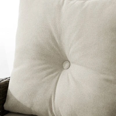 - Quick-drying olefin fabric cushion covers resist mildew and sun fade