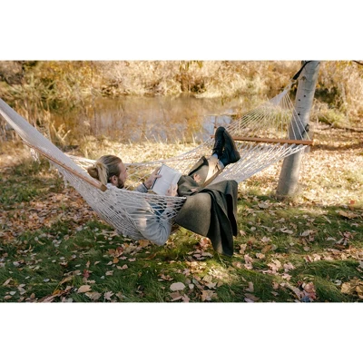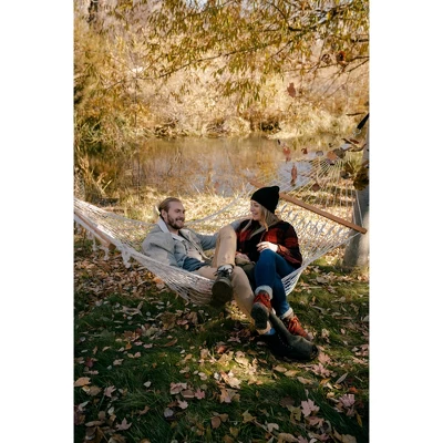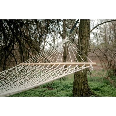 The Stansport Acapulco Single Person Hammock features a ultra strong and breathable cotton and hardwood spreader bars with strong attaching ropes with welded attaching rings. Size: 6.5′ x 4′. Weight limit of 300 lbs. Stand not included.