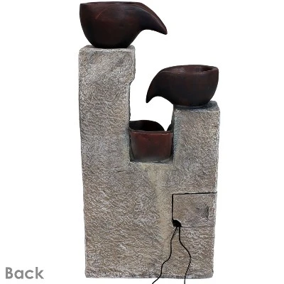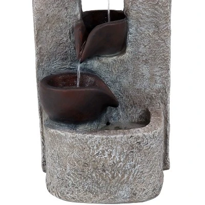 Enhance any patio, garden, or other outdoor area with this solar-operated fountain featuring a backup battery. Constructed of durable and easy-to-maintain polyresin, this fountain is lightweight, easy to move anywhere, and is resistant to the elements outdoors. Also, this tiered outdoor water feature is designed with a variety of textures and neutral colors to enhance any outdoor living space. Water gently flows from each of the tiered vessels for a peaceful decorative accent that harnesses the power of the sun via the included solar panel. When the solar panel is in direct sunlight, the pump will be powered by solar energy and the battery pack will recharge. Once fully charged, the battery will power the fountain for up to 4 hours. The battery will also automatically run the fountain when it is cloudy or nighttime. Place this stunning, detailed fountain anywhere and watch your space illuminate with soothing sounds and beautiful views.