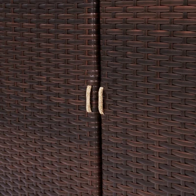 Versatile and lightweight, this UV-protected PE rattan rolling bar cart features two inner shelves, a 0.5mm glass tabletop, and a convenient bar at the front. Weather-resistant with a large storage capacity underneath and locking 360-degree casters.