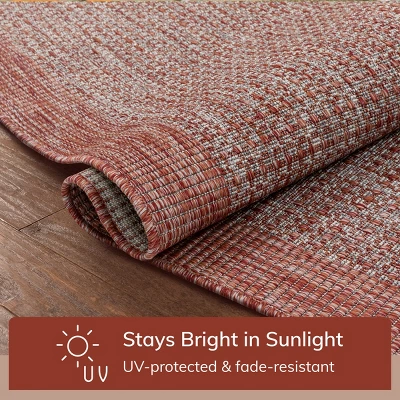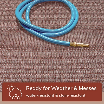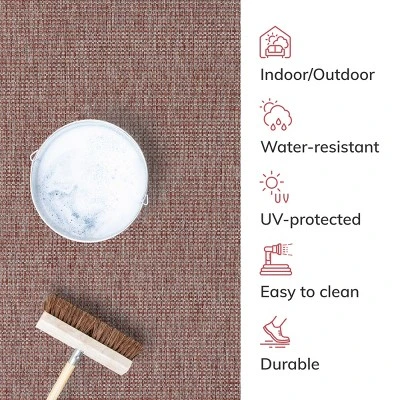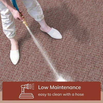 A flat-weave indoor/outdoor rug with zero pile and low maintenance. The 100% polyester yarn and backing are stain, fade and weather resistant making for a durable rug that’s attractive and easy to maintain. Designed for high-traffic areas, its all synthetic pile is as easy to clean as rinsing off with a hose.